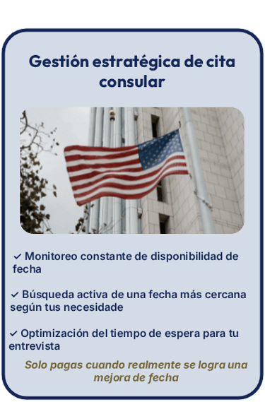 Por eso no solo agendamos tu cita consular: trabajamos activamente para mejorarla, buscando opciones más favorables cuando están disponibles.